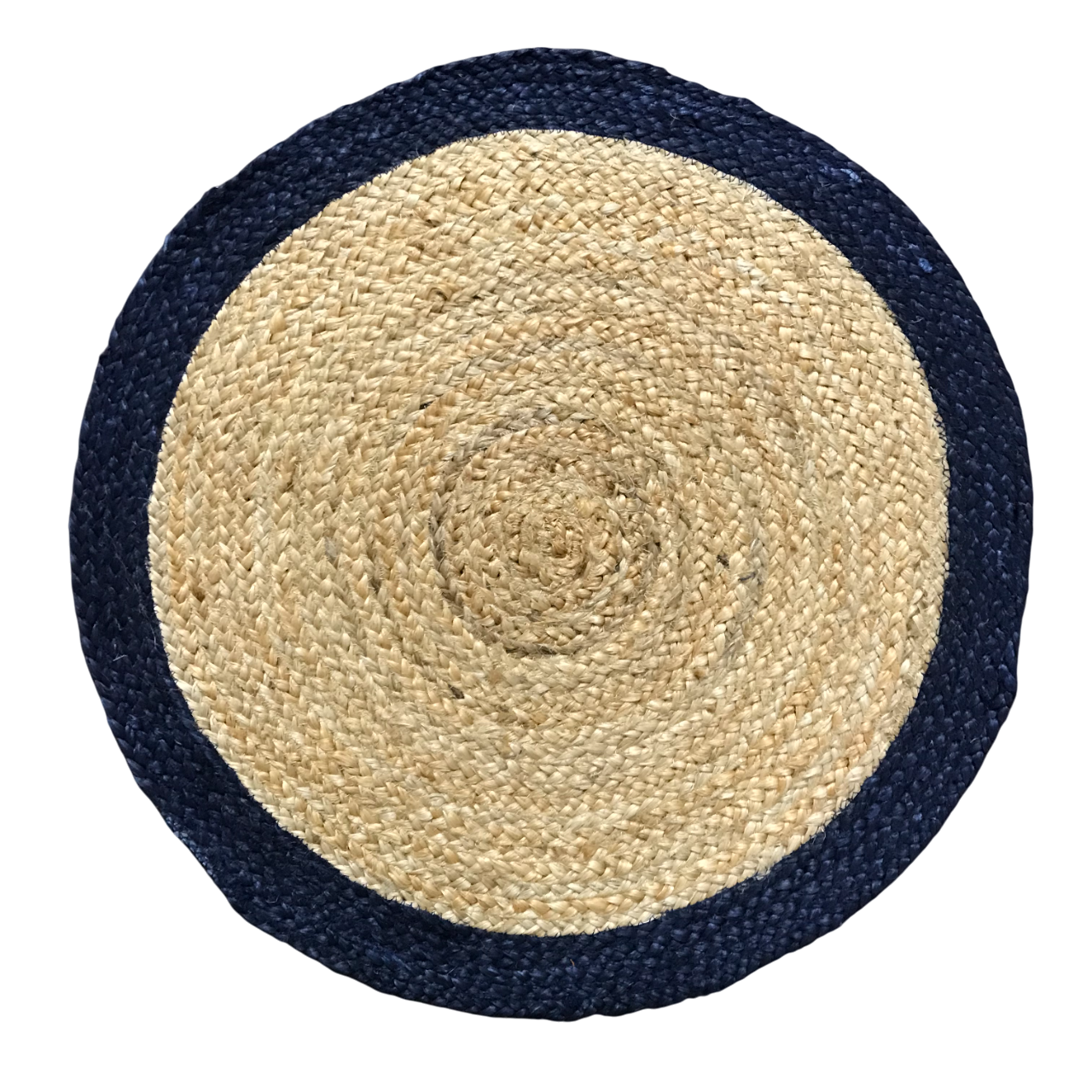 DivineHandicrafts Handwoven Round Jute Rug Beige Blue 60x60