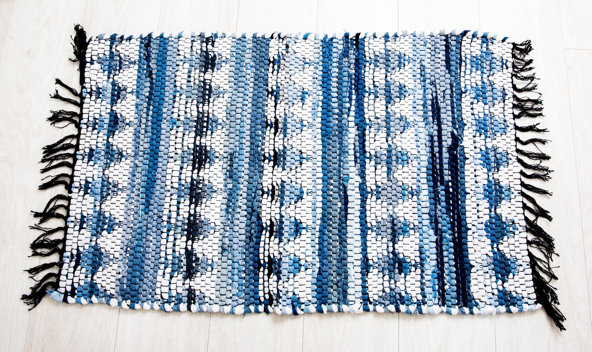 Handwoven Sustainable Printed Chindi Rug from Recycled Cotton