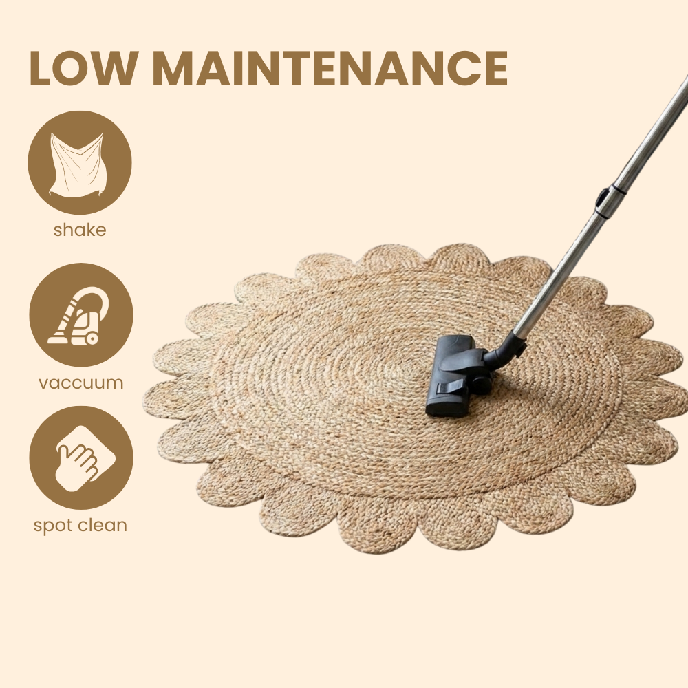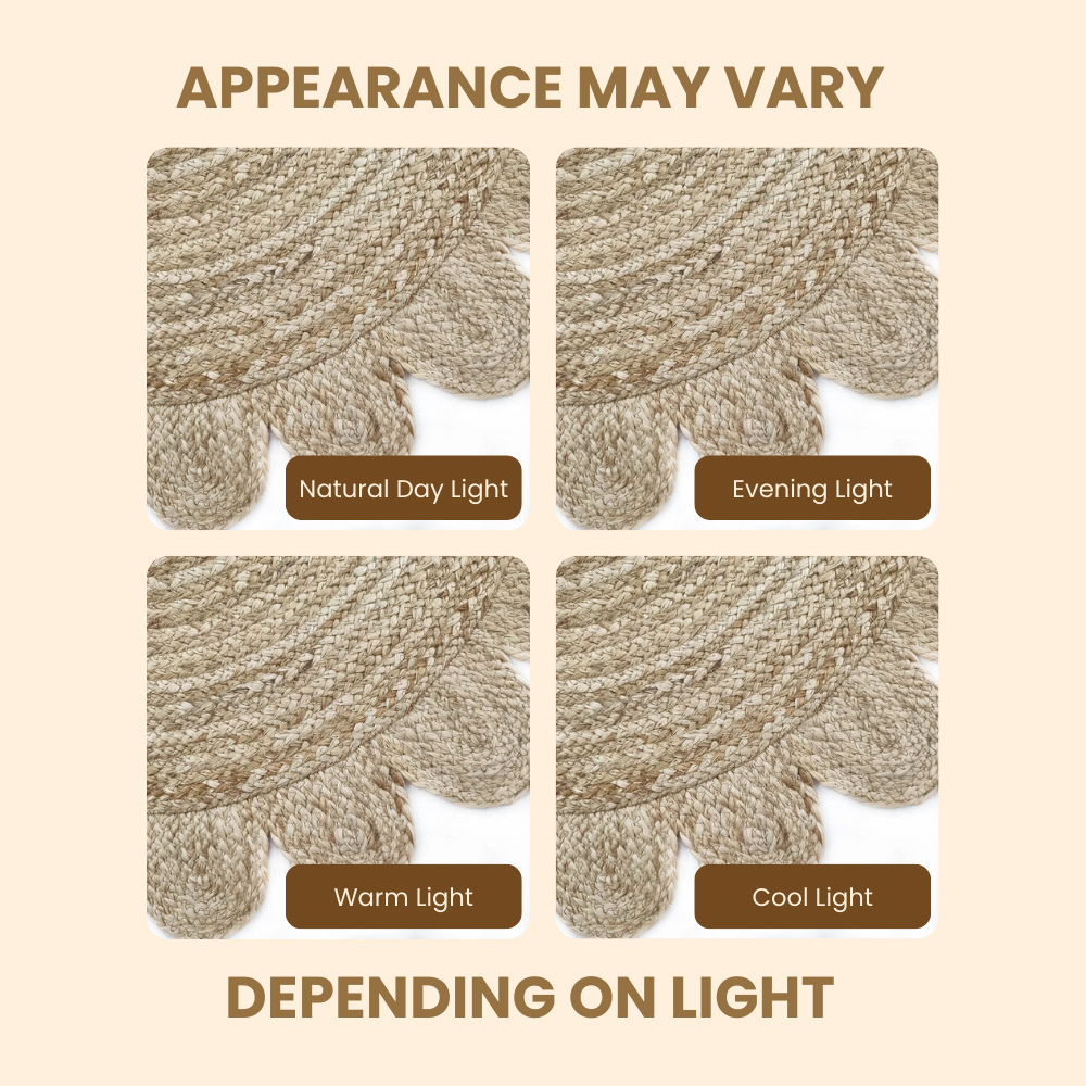 Divine Handicrafts Hibiscus Flower Shaped Eco-Friendly Round Beige Jute Rug