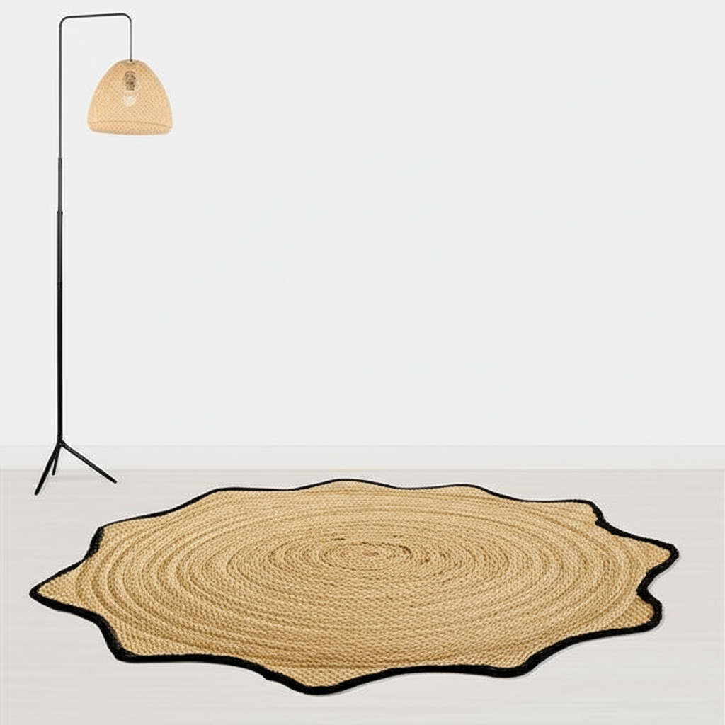 Bring earthy texture and minimalist charm to your home with our round jute rug with black border, handcrafted from natural jute fibers for lasting quality. Its versatile 80x80 cm size and bold black edging make it a standout accent in any bathroom, kitchen, living room, or dining room.