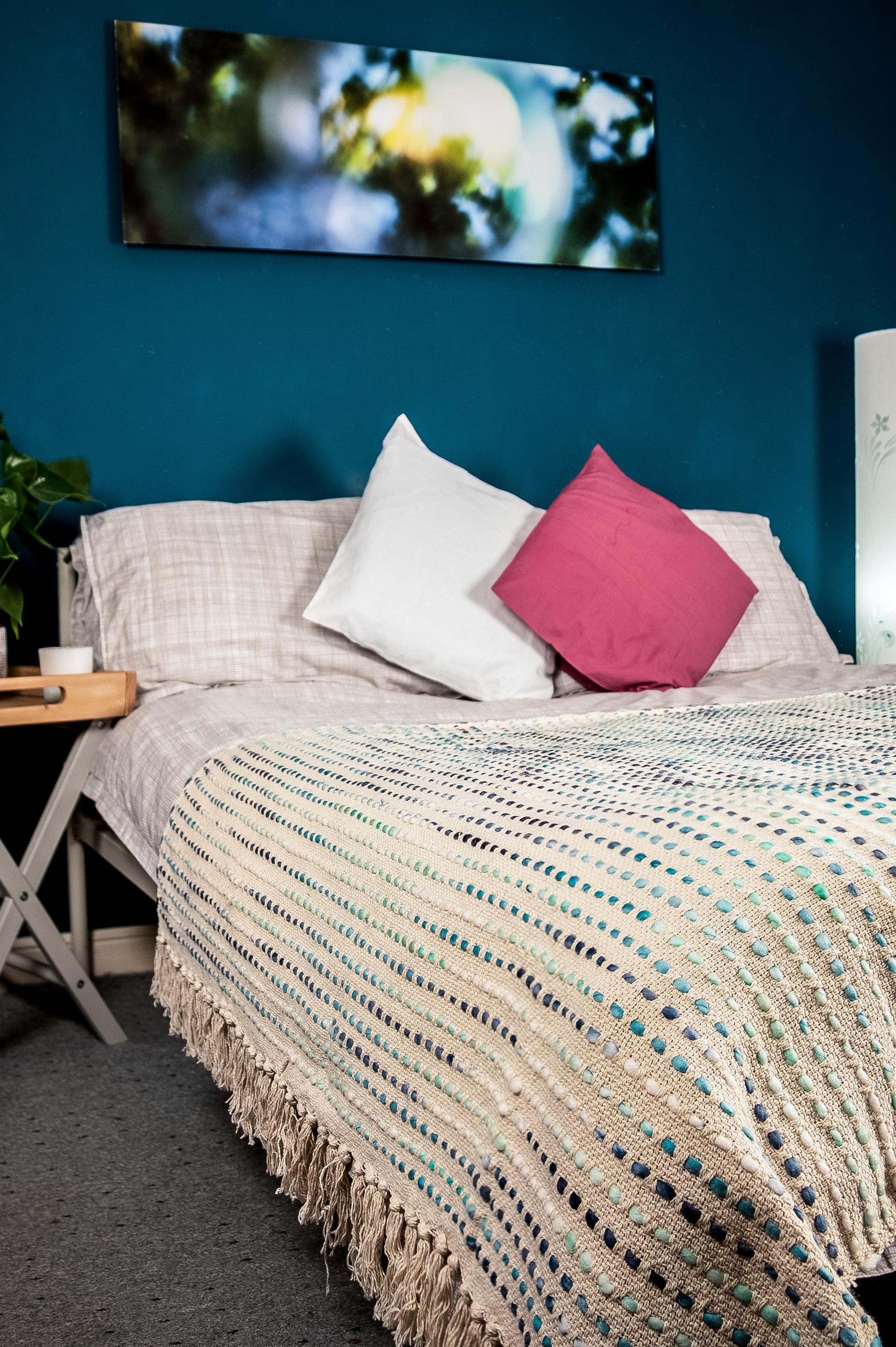 Soft Cotton Beige Blanket with Turquoise Dots 50x70 inches