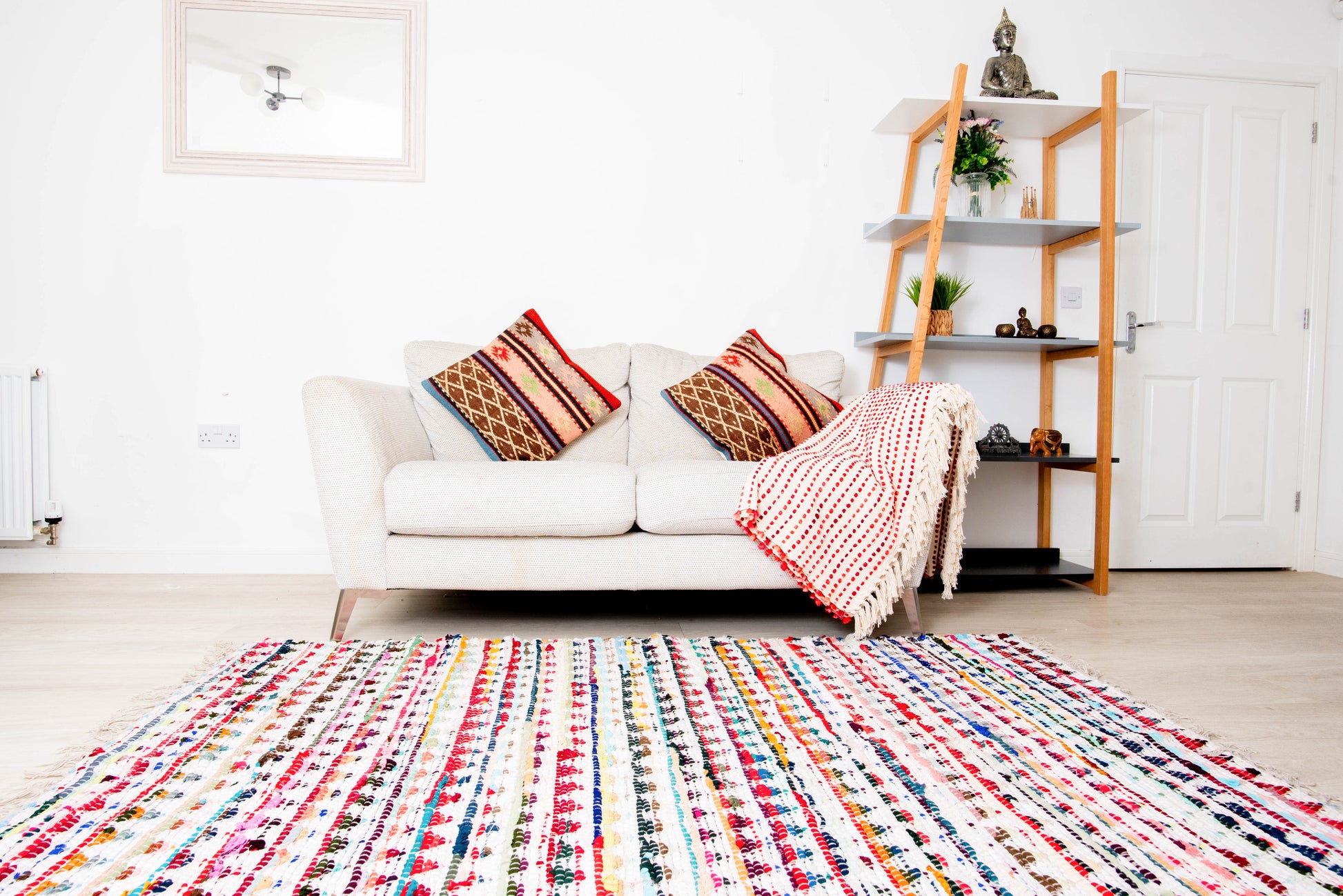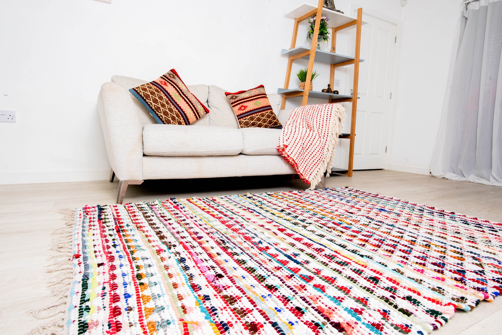 Discover the artistry of our 100% cotton rag rugs, where sustainability meets softness. These rugs are skilfully handwoven from recycled cotton, transforming discarded fabrics into a symphony of colour and texture. Embrace both the eco-friendly ethos and the inviting feel of pure cotton beneath your feet. Elevate your space with the beauty of conscious living, as each rug tells a story of repurposed materials and exquisite craftsmanship.